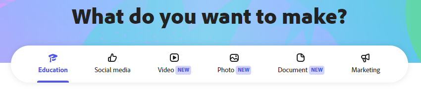 3. You will now be on your Adobe Express home screen.